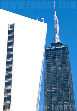 John Hancock Center L'une des dernières tours construites à Chicago, le Sofitel semble embrasser le John Hancock Center. Quoi de plus normal entre "Big John" et celle que les habitants de Chicago surnomme la mariée. (Photo Didier Forray)